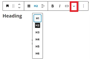 Headings can be set from level 1 to 6, however, avoid using H1 as each post, page, job or event can have only one Heading 1, and this is already the title.